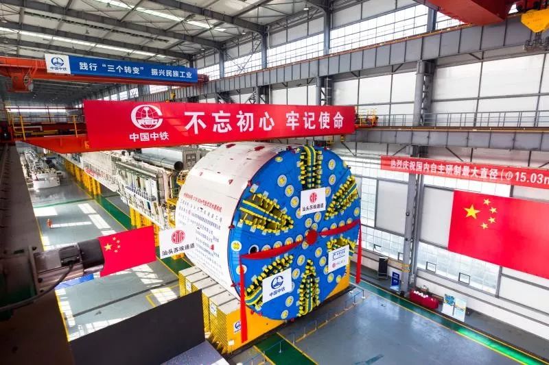 2017年,中铁装备成功研制了直径15.03米泥水平衡盾构机,用于汕头海湾隧道项目。这是我国自主研制的首台15米级超大直径泥水平衡盾构机。