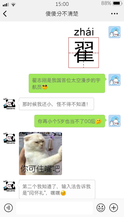 “荀”和“苟”这两个姓氏,他竟然傻傻分不清楚,于是我又拎出几个容易混淆的姓氏来考考他。