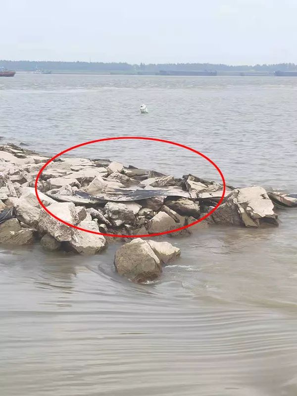 该负责人拍摄的现场视频和照片显示,目前江水水位下降,有石堆露出水面,一块黑色条状物体挂在石堆上。