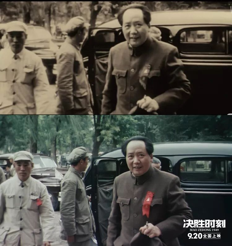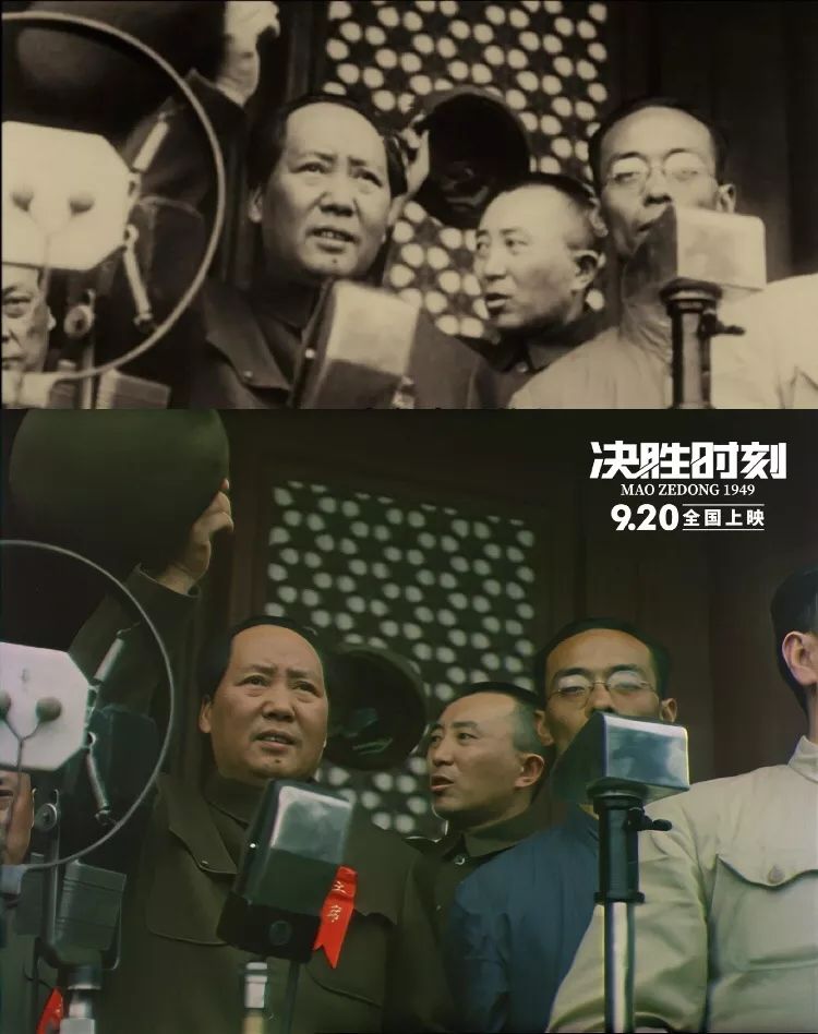 然而这时片方突然搞了一波大操作,在16日发布了一组新剧照——开国大典历史影像经过修复后的彩色4K画面。这是开国大典历史影像资料第一次以彩色超清画质出现在大荧幕上。