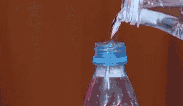 第三步:瓶子竖着放进水箱,就是戳小孔的底部向下,这样醋水才能流到水箱里。