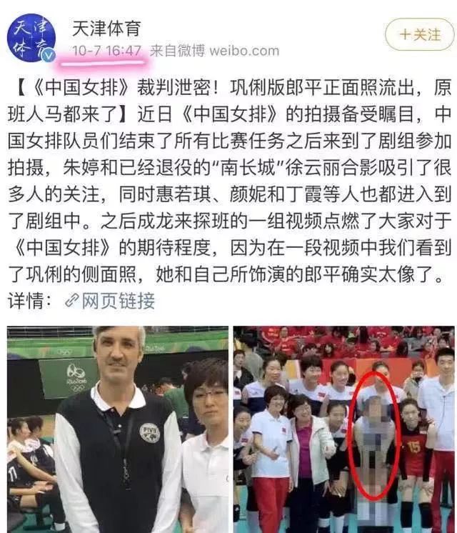 7日,@天津体育 发布电影《中国女排》花絮照片,其中一张前中国女排队长惠若琪被打上马赛克的照片在网络引发热议。