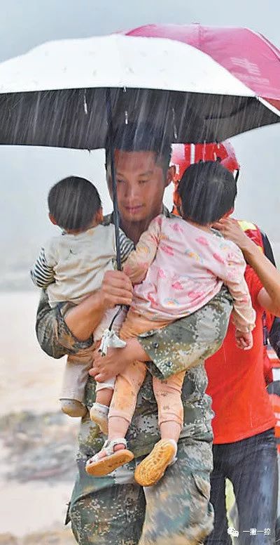 8月13日,山东淄博,桓台县马桥镇一小区出现内涝,50多名老人和孩子被困。图为消防队员通过手把手接力的方式,将一名出生只有15天的小婴儿转移到安全地区。董振霞 冯岩摄影报道