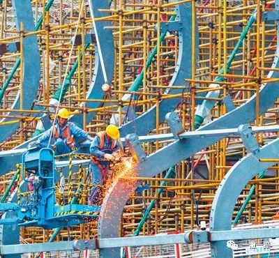 随着2022年北京冬奥会的脚步日益临近,冬奥筹办进入关键阶段。图为7月20日,建筑工人在“冰丝带”国家速滑馆上焊接钢龙骨。刘帅冶 摄