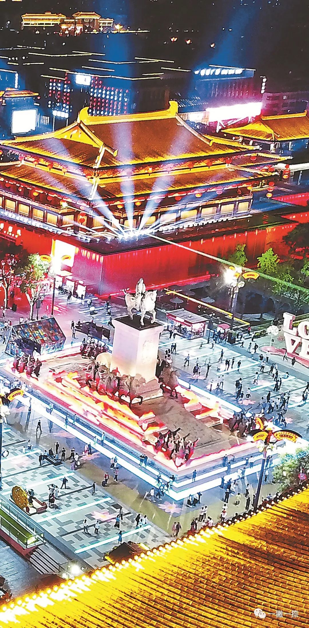在中华人民共和国成立70周年之际,全国各地相继上演精彩纷呈的灯光秀。图为西安市大唐不夜城灯光秀。张丹华 摄