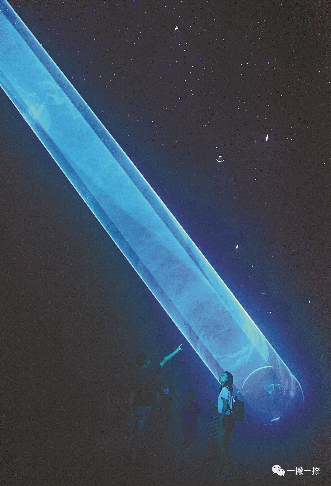 6月29日,2019南京创新周黑科技展吸引了很多市民带着孩子一起参观、体验。图为入口处的一个沉浸式星空数字意境互动体验区。建华 摄