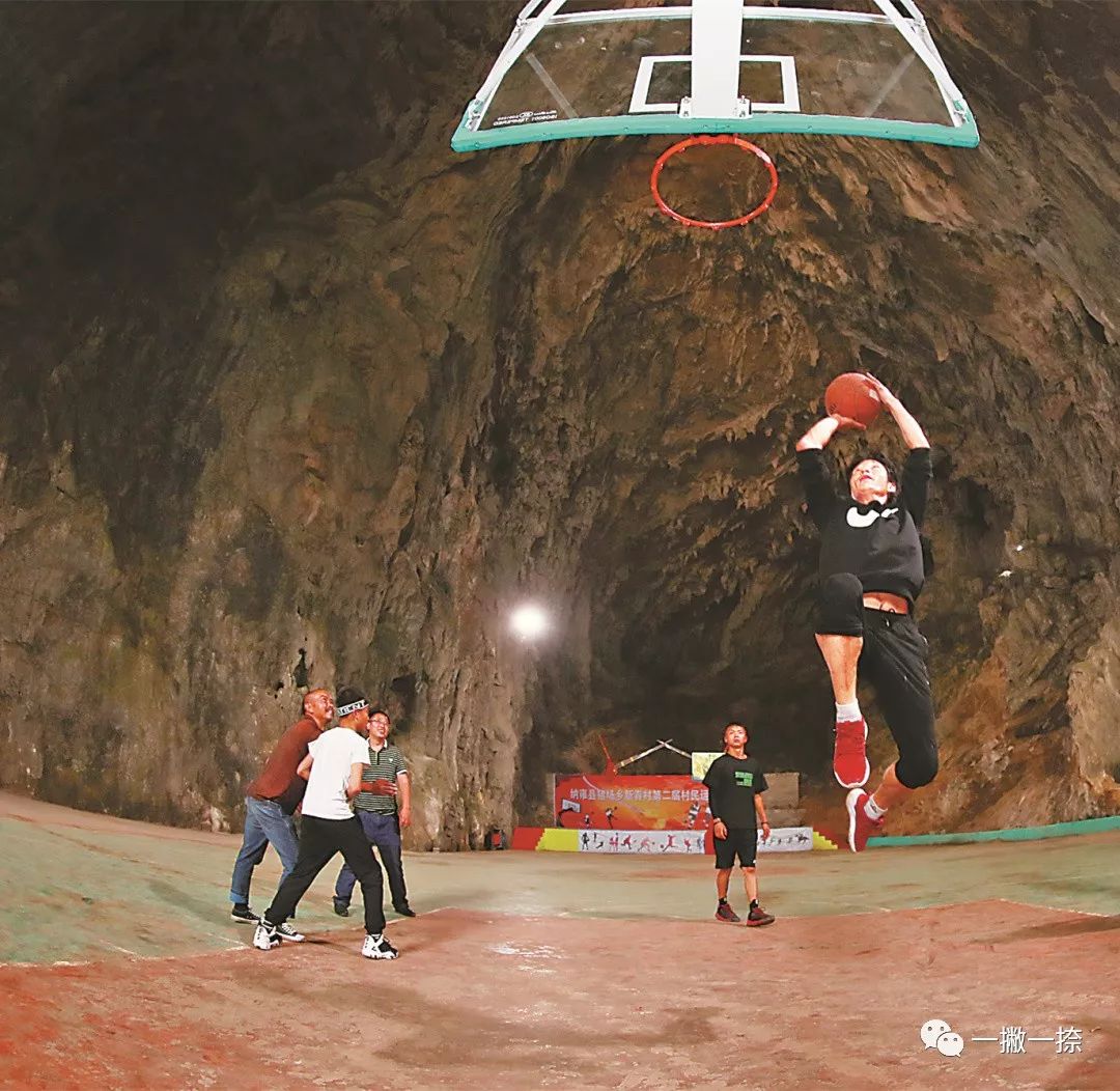6月6日,贵州省纳雍县新春村村民在新建的溶洞球场里练习篮球。韩贤普 摄