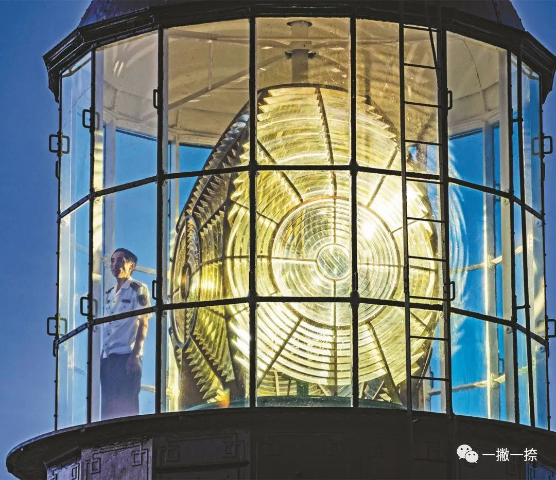 在浙江舟山群岛北端的花鸟岛上,一座百年灯塔,为夜间进出上海、宁波、舟山等港口的远洋船舶指路。50多岁的刘生龙在这里工作了11年。图为刘生龙站在灯塔上瞭望附近海面情况。