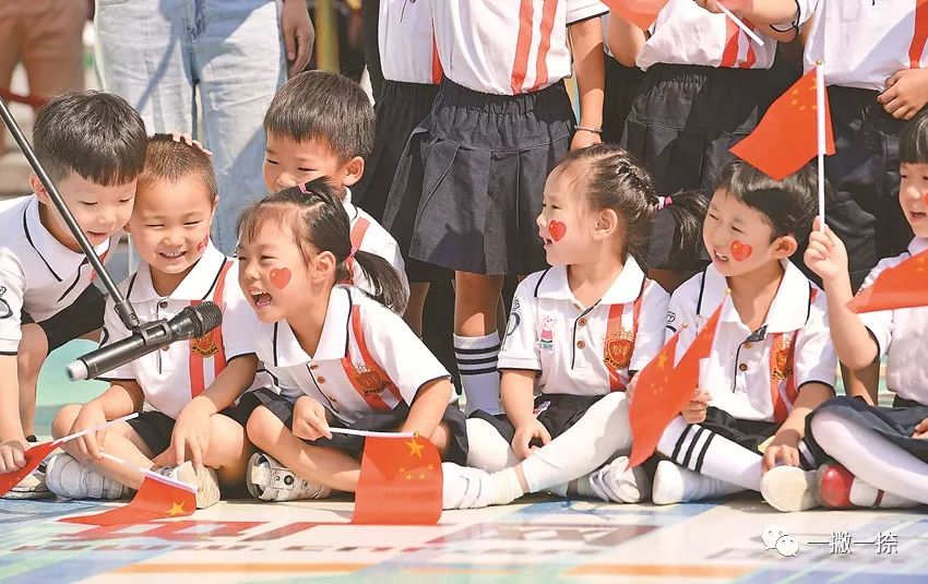 9月2日,在陕西西安大雁塔南广场,小朋友们挥舞国旗,争先恐后凑近话筒为祖国歌唱。当日,庆祝新中国成立70周年大型全媒体活动《歌唱祖国·一首歌一座城》走进古都西安。袁景智 摄