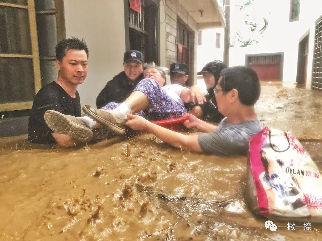 8月10日1时许,今年第9号台风“利奇马”登陆浙江温岭沿海。10日下午,安徽省宁国市宁墩镇老街遭到洪水侵袭,当地干警和村干部们将一位被困家中的老人转移到安全地带。李晓红 摄