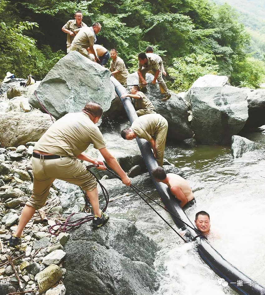 湖北省十堰市鲍峡镇境内普降暴雨,造成电力、通信、供水和交通等中断。图为8月5日,17名突击队员深入鲍家店村小将溪河上游自来水水源取水处,完成5.5公里供水管道抢修。周家山 摄