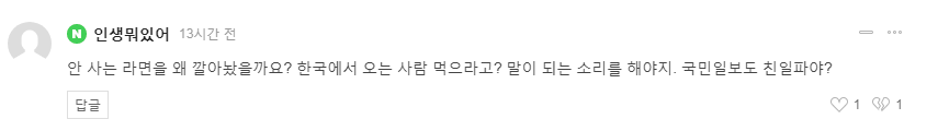 没人买的泡面为什么放在货架上?给从韩国去的人吃吗?说点像样子的话吧。《国民日报》也是亲日派?