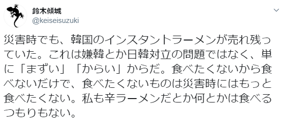 和日韩对立无关,我只是单纯觉得“不卫生”、“不好吃”、“太辣了”。