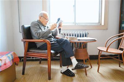 杨棣华老人至今保持着每天看英文报纸的习惯