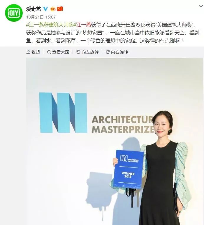 这几天,一则关于中国女演员江一燕获得美国建筑大师奖的消息在网上引发争议。