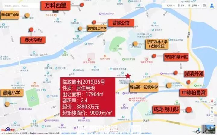 挂牌信息显示,该地块地处临安老城区,占地约20亩。