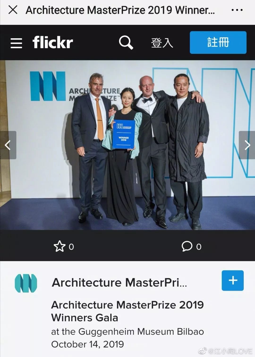 知乎上作者为游旭东的文章这样扒出事情的蛛丝马迹。照片里的奖项是Architecture MasterPrize (AMP),翻译过来也就是建筑大师奖,是一个叫Hossein Farmani 的伊朗人在美国创立的,实际上和美国也没啥关系。今年的大奖得主是来自中国的gad· line+ studio。让大家不解的是,参加2019年的颁奖仪式,但江一燕手里拿的却是2018年的奖。