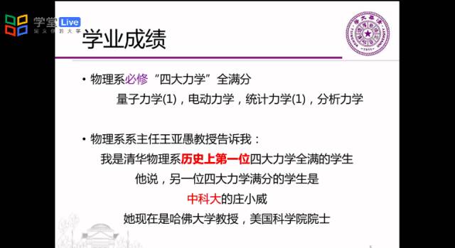 大三学年已位居全年级第一名,大三学年平均学分绩97.7分。所有物理课程均在94分以上的好成绩,所有物理课程的平均学分绩为98分,并取得了物理系最重要的四门必修课“四大力学”全满分的成果。