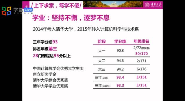 沈天成的学业发展是坚持不懈,逐梦不息的过程。2015年转系到计算机系,他实现从班级30到前三的逆袭。