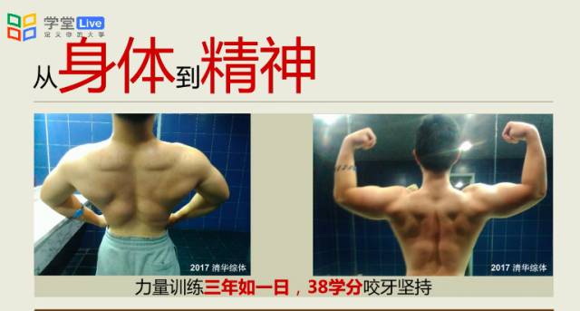 曾经的他,三千米都跑不下来,引体向上成绩为0;后来,他跑了90次阳光长跑(要求为21次),引体向上拉到满分,并成为清华健美队成员。