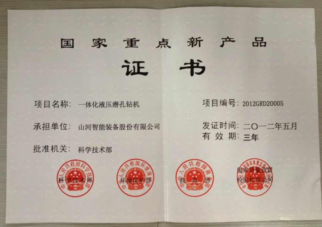 2012年,一体化液压潜孔钻机被科技部、环保总局、商务部、质监总局共同认定为“国家重点新产品”;开发出SWDE165高风压臂式潜孔钻机、SWDE200高风压臂式潜孔钻机、SWDB200高风压潜孔钻机缅甸钻机、西藏高海拔配五十铃发动机型SWDB200潜孔钻机、SWDH89-1露天钻车整改、SWHD90液压凿岩机、SWDR100切削钻机。