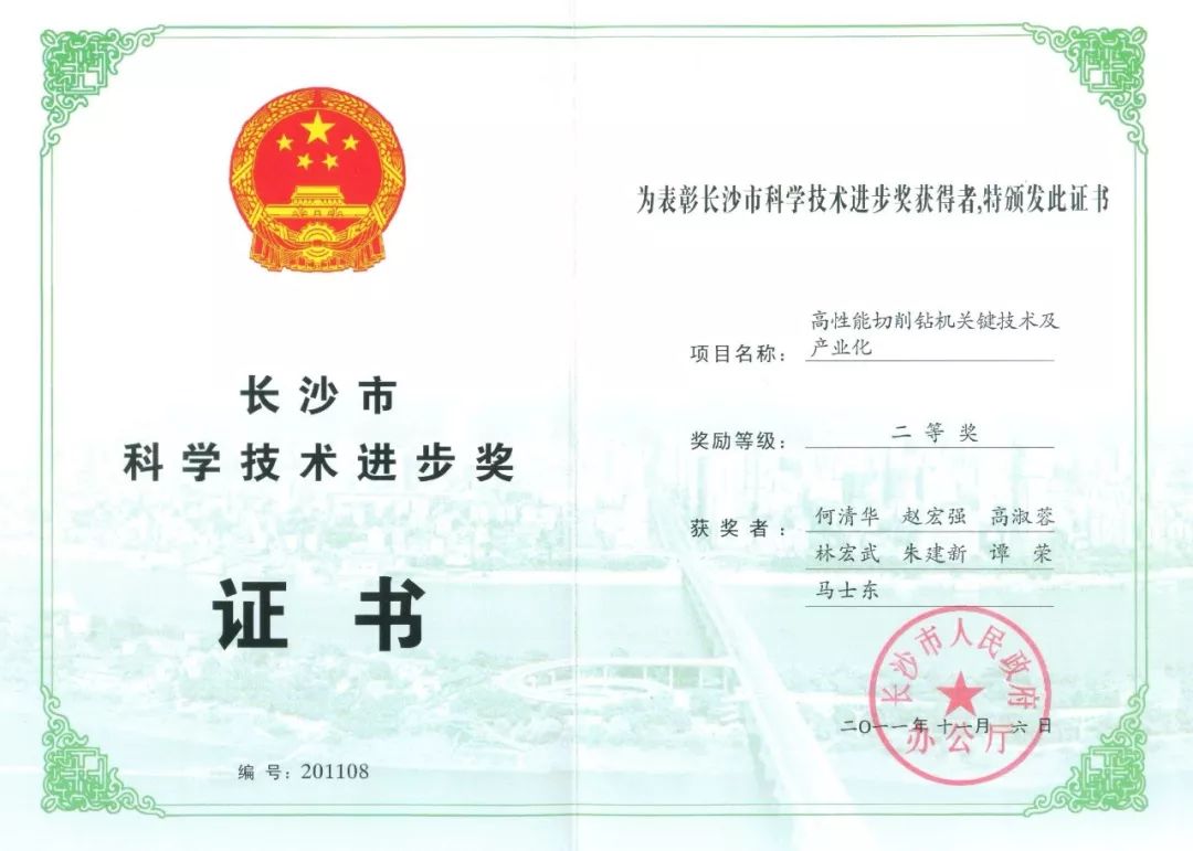 2014年,“螺旋地桩钻机研制及产业化”获长沙市科技进步三等奖;开发一体式SWDR150切削钻机。
