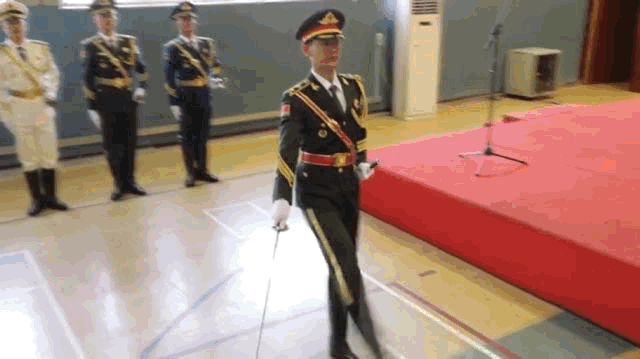 由新任执行队长凌再鑫接受军刀。