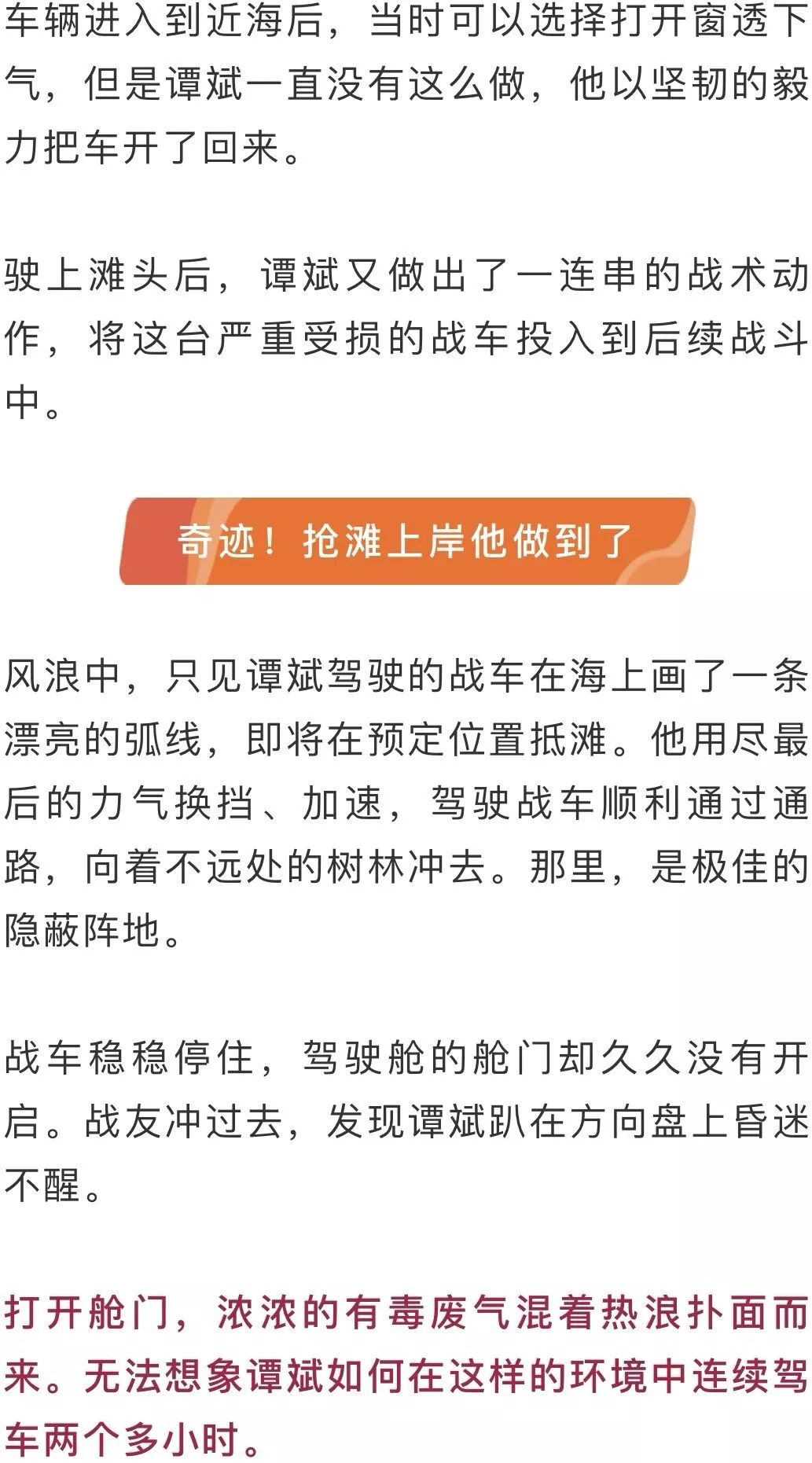 这个时候进去冒着极大的风险,如果涌浪卷过来,整个车将随时沉没。但谭斌仍然决定登上战车。