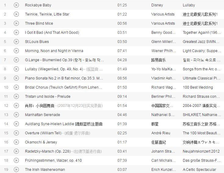 比如约翰·施特劳斯的《蓝色多瑙河》、肖邦的《大圆舞曲》、贝多芬的《月光奏鸣曲》……