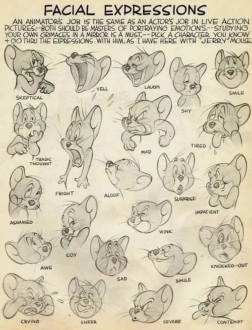为了画出最生动形象的表情,动画师Irv Spence一边对着镜子做各种夸张的表情,一边照着画下来——