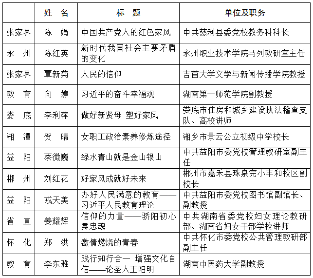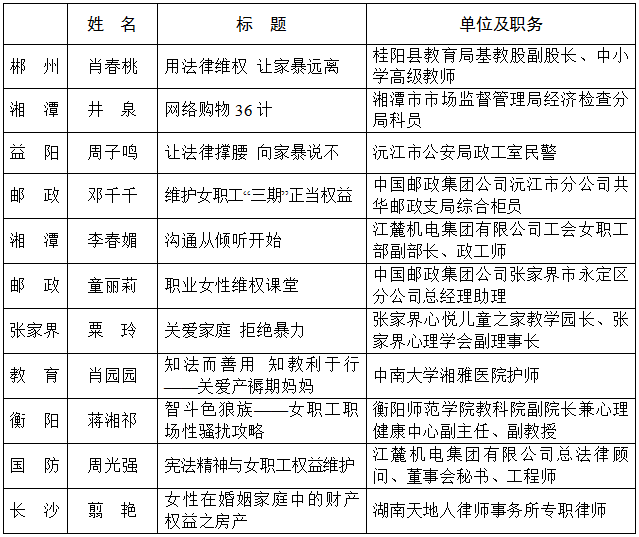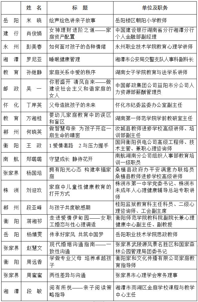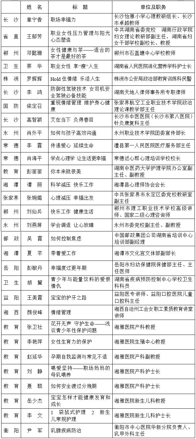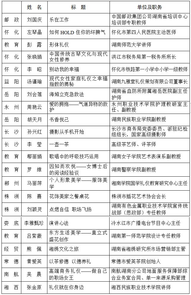 经过全省女职工芙蓉公益讲堂讲师比武的层层考验和后期培训,公益讲师们带着精品课程与大家见面啦!欢迎姐妹们来点单!
