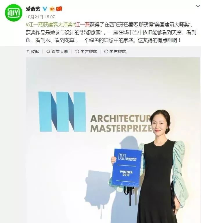 前段时间,演员江一燕获得美国建筑大师奖的消息在网上引发争议。