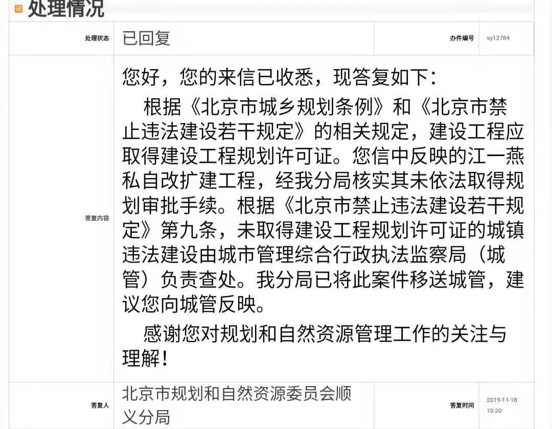 对此,北京市规划和自然资源委员会顺义分局回应: