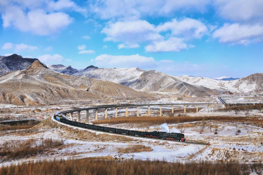 内蒙古自治区赤峰市元宝山区邵家湾子大桥,建设型蒸汽机车牵引客货混编列车