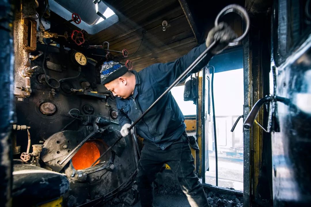 新疆维吾尔自治区哈密市三道岭煤矿,一个完整的蒸汽机车班组由三人组成:司机、副司机和司炉。