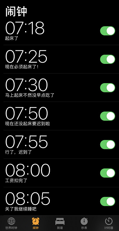 也许在学校里还可以暂时躲避这寒冷的酷刑,可总有一天也要接受社会的毒打,不相信的朋友们可以看看小编为了起床,定的闹钟: