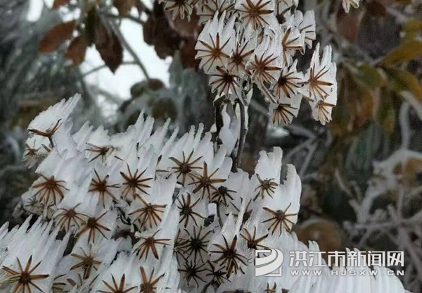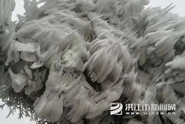 “雾凇”一词最早出现于南北朝时代宋·吕忱(公元420年—479)所编的《字林》里,其解释为:“寒气结冰如珠见日光乃消,齐鲁谓之雾凇。”这是最早见于文献记载的“雾凇”一词。雾凇俗称树挂,非冰非雪,是在严寒季节里,空气中水汽直接凝华,或过冷雾滴直接冻结在物体上的乳白色冰晶沉积物。雾凇的形成需要严苛条件,气温不但要足够低,而且水汽还要足够充分,是非常难得的自然奇观。(通讯员 向 瑞)