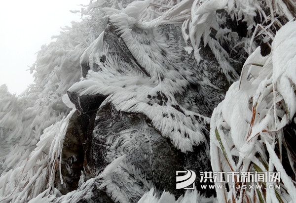 11月29日,平均海拔1300米的湖南雪峰山国家森林公园迎来今冬第一场大雾凇,漫山遍野银装素裹,松树和灌木一夜之间被冰晶所包裹,晶莹剔透、耀眼迷人,白茫茫一片如童话世界一般美丽……