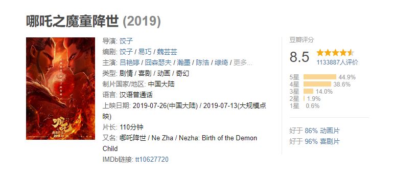 就连豆瓣评分高达 8.5 的《 哪吒之魔童降世 》之前也有人批评它的改编,只不过更多的人都喜欢,它的评分自然不会低。