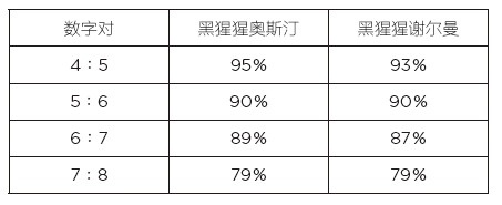 但是,黑猩猩也会犯错误,我们人也一样会犯这种错误。如果被比较的两个数字相距较远,例如2∶6,那么黑猩猩就几乎不会犯错,因为两个数字间 差异较大,这对黑猩猩而言也很明显。然而,随着两 个数字间的差距减小,错误率就会提高。你已经从上一章学到了,这就是“距离效应”。