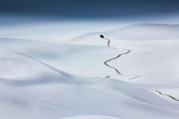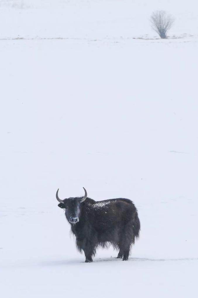 (一只孤单的野牦牛正在雪中寻觅,诗句出自舒亶《虞美人·寄公度》 ,摄影师@姜鸿)