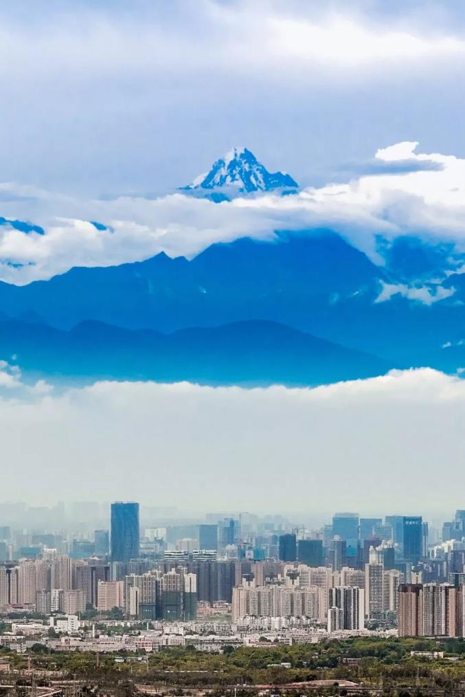 (从成都远眺雪山,诗句出自杜甫《绝句》,摄影师@嘉楠)