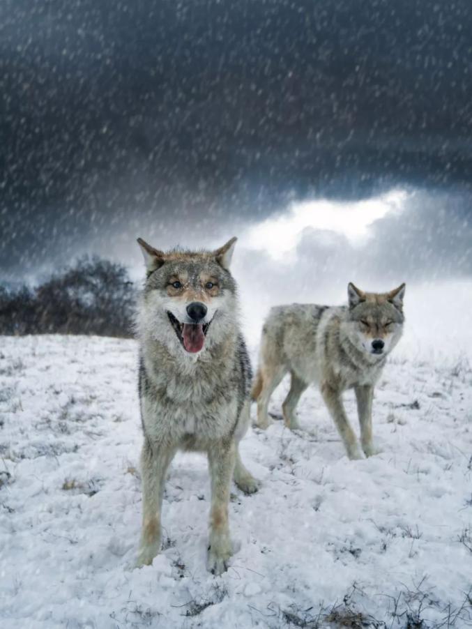 (雪中的狼,拍摄于内蒙古,摄影师@宾果)
