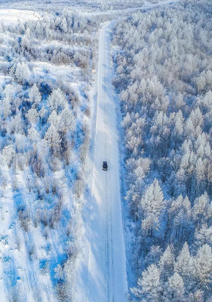 (新疆禾木村山路,诗句出自岑参《白雪歌送武判官归京》,图片源自@VCG)