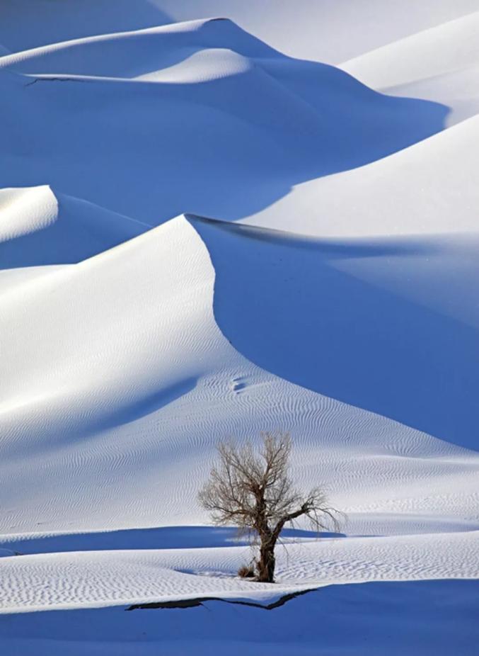 (新疆塔克拉玛干沙漠雪景,摄影师@王汉冰)