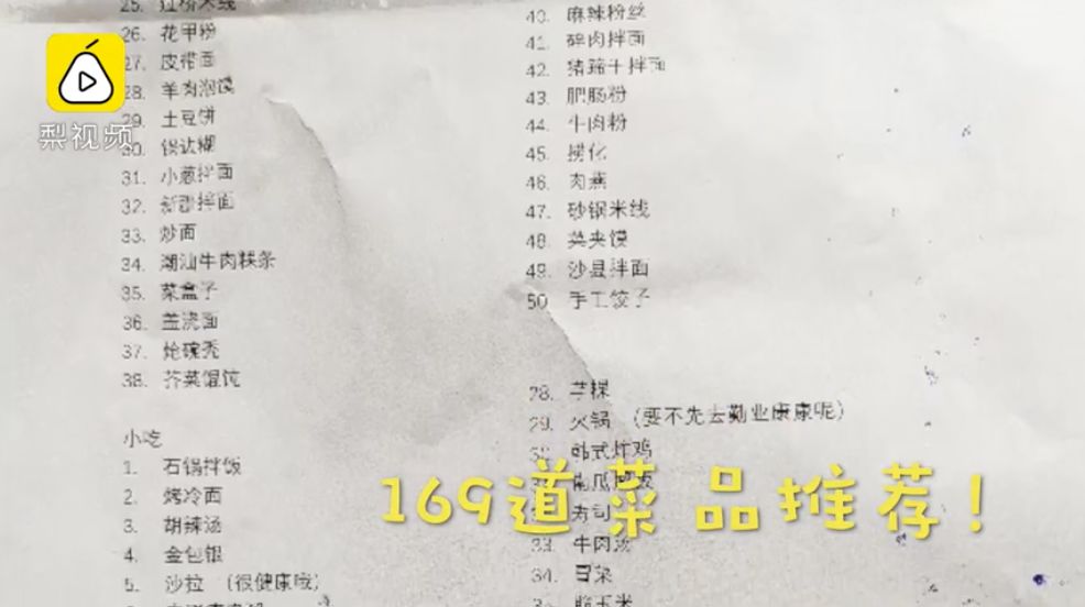 海报上密密麻麻地写满了各色菜品,其中不乏“亮点”。比如,有人点了“佛跳墙”,有人特别注明要“西红柿炒蛋,咸的”,有人写出了让无数网友佩服不已的“biangbiang面”。