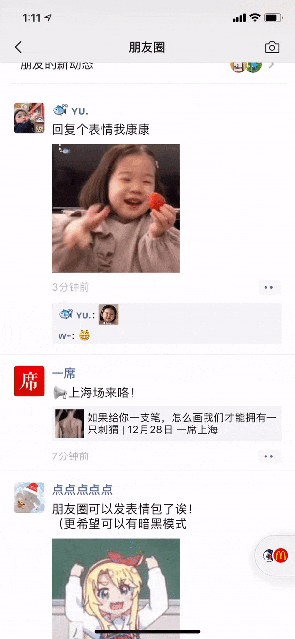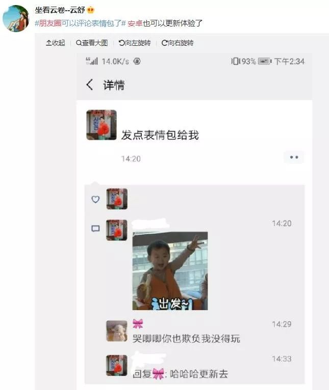 怎么做到的?更新到微信最新版,朋友圈留言就可发送表情啦!