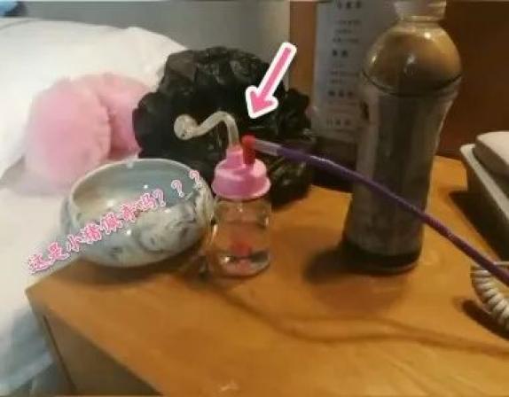 民警赶到现场,看见一男子身旁放着一个粉色壶状吸毒工具。