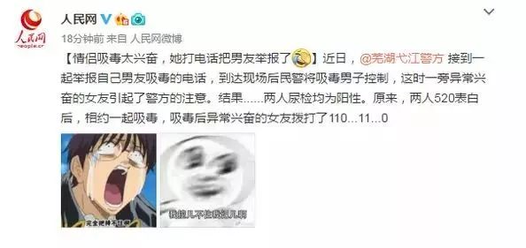 原来,两人520表白成功后相约一起吸毒,没想到吸毒后异常兴奋的女友,拨打110玩起举报游戏,求这名被抓的吸毒男友心理阴影面积。