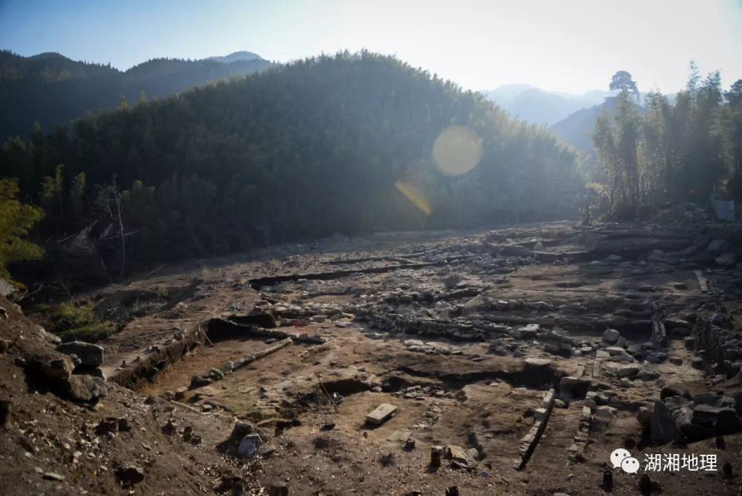 这里也叫大福坪。东有福寿山,南有九龙山,西为白水山,东北是福桶山,四面群山环抱,中间是一处非常平坦的山地。考古工作陆续展开后,新的发现不断颠覆这里只是一个“白莲教遗址”的观念。砍掉密集的林木,剖开厚重的土层,一座寺庙遗址赫然出现在眼前。我们站在坡顶山寨的位置向下俯瞰,可以清晰地看出这片建筑群的功能分区。它有一座大殿,大殿旁边是一个偏殿,另一边高台处是造纸遗迹。穿过造纸遗迹,则是一片颇有规模的住宅区。在这片建筑群后方山坡的竹林里,则是一座家族墓葬。